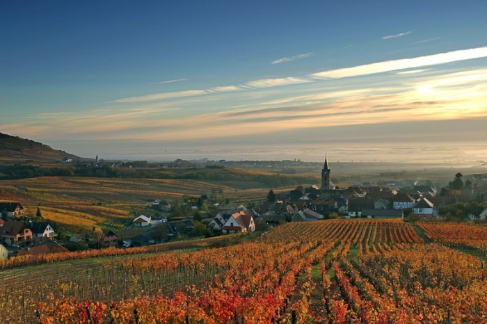 阿爾薩斯地區(qū)的葡萄種植區(qū)靜靜地散布在阿爾薩斯平原的高處,遠(yuǎn)離毗鄰三國的經(jīng)濟(jì)大區(qū)的喧囂,時(shí)間仿佛都在這里停下了腳步。大大小小的葡萄田環(huán)繞著大片簇?fù)碇忭數(shù)慕烫枚ā⒂兄t色屋頂?shù)男〈迩f。木頭房子和在每一家窗口上盛開的紅色天竺葵和玫瑰將這般平靜的田園景色裝點(diǎn)得好像明信片一樣。紅酒加盟人士認(rèn)為,整齊有序的葡萄園折射出阿爾薩斯人的嚴(yán)謹(jǐn),而隨處可見的美食餐廳和典型的當(dāng)?shù)匦【起^"winstubs"則是不折不扣的法國風(fēng)情。歷史沉淀而成的這種雙重性正是阿爾薩斯地區(qū)引人入勝之處。享受生活、熱情好客和釀出最好的美酒就是他們的處世哲學(xué)。著名的"紅酒之路"從北到南貫穿著整片葡萄種植區(qū),成為當(dāng)?shù)芈糜螛I(yè)的熱點(diǎn)。