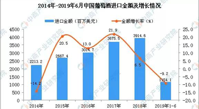 2019上半年中國葡萄酒進(jìn)口量下降12.9% 量額雙降
