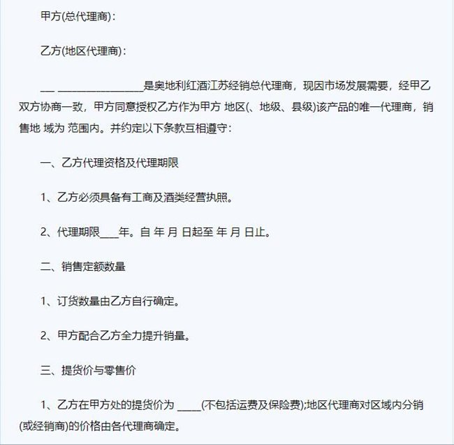 1、紅酒代理合同范本大全