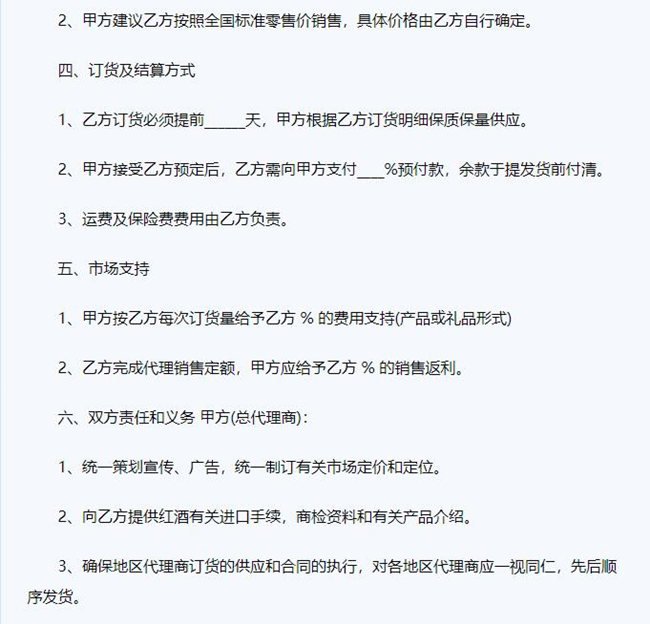 2、紅酒代理合同注意事項